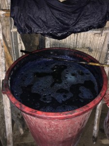 A little further down slippery mud paths we eventually found ourselves at a neighborhood of little hut farms. Chi led us into one of these huts and informed us that we had arrived at her home. Her mother was there to greet us as well as an assortment of farm animals like chickens, dogs, and pigs. Other locals of the community were close by but Chi explained to us that it was just her and her mother living in this particular hut. First, they showed us how they dye their garments using indigo plants, then we sat down on little stools and helped prepare our lunch by picking morning glory leaves off of their stems and watching Chi stir-fry the rest of our vegetables over a bamboo woodfire. About 20 minutes later our meal consisting of rice and stir-fried vegetables was done. It was a simple yet delicious meal that required no extra sauces or seasoning. Chi’s mother joined us for lunch and we made small talk learning about the H’mong way of life. When we were all finished Chi walked into another room and returned with a sticky rice dessert and some rice wine! We threw back a few shots of rice wine while Chi offered to take us further into the village and run some errands with her; we agreed to accompany her.