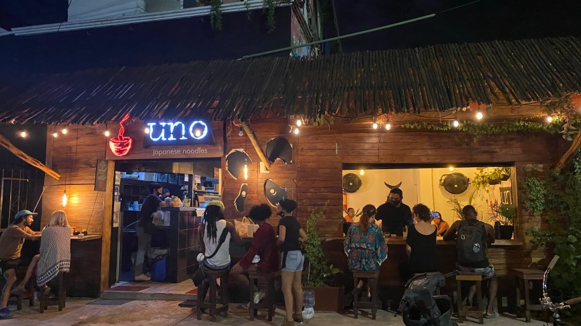 Further into the downtown area, we searched for some happening places to spend our Thanksgiving. Given that we were unfamiliar with the area we didn’t notice much at first on the main street, so we decided to hail a taxi and see what was going on further along the beach strip. Anyone who has been to Tulum knows that the real action happens near the beach. Downtown, closer to where we were staying, was about a 15-minute car ride northwest of the beach.